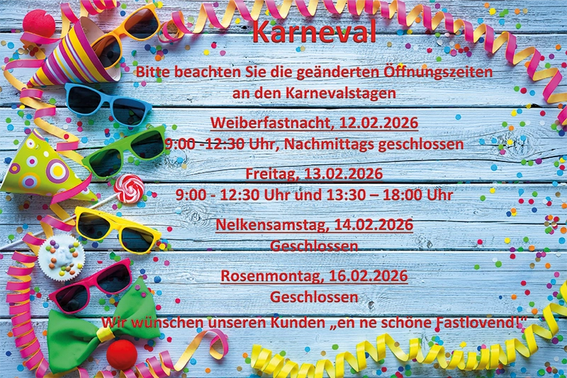 - Mo - Fr.: 9:00 - 12:30 und 13:30 Uhr bis 18:00 Uhr - Sa.: 10:00 bis 13:00 Uhr